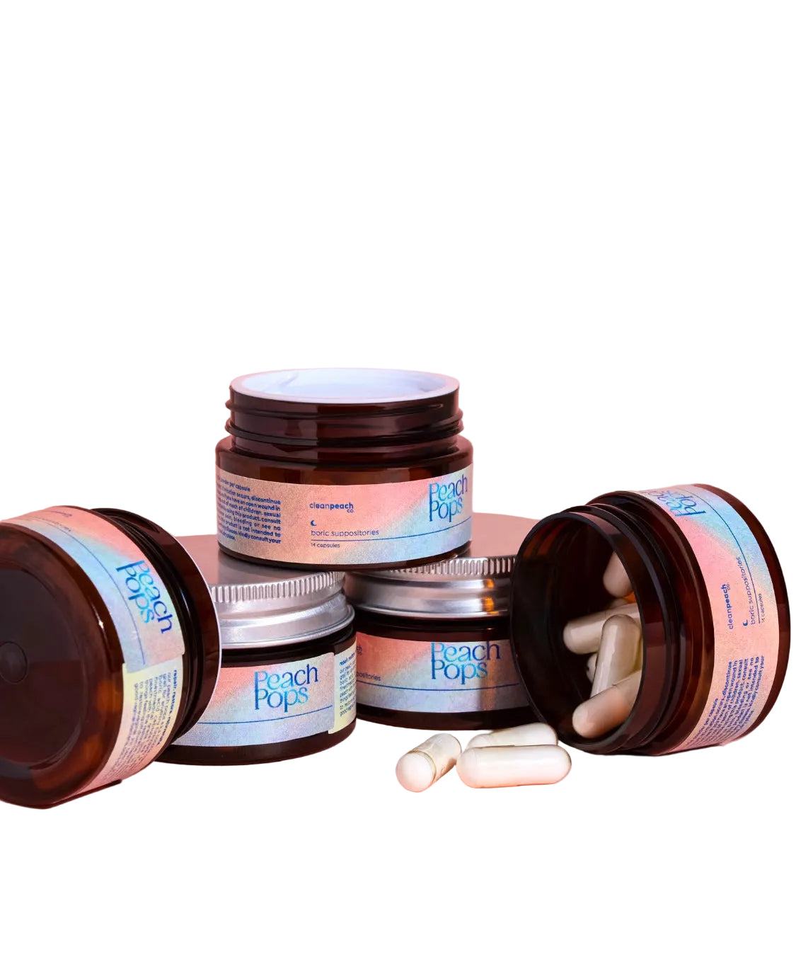 NATURAL AND ORGANIC INGREDIENTS: We use pharmaceutical grade Boric Acid, organic Aloe Vera, organic Apple Cider Vinegar and active Probiotics. No Fillers, Flow Agents or Artificial ingredients. Our peach pops are all natural, gluten free, and NON-GMO.